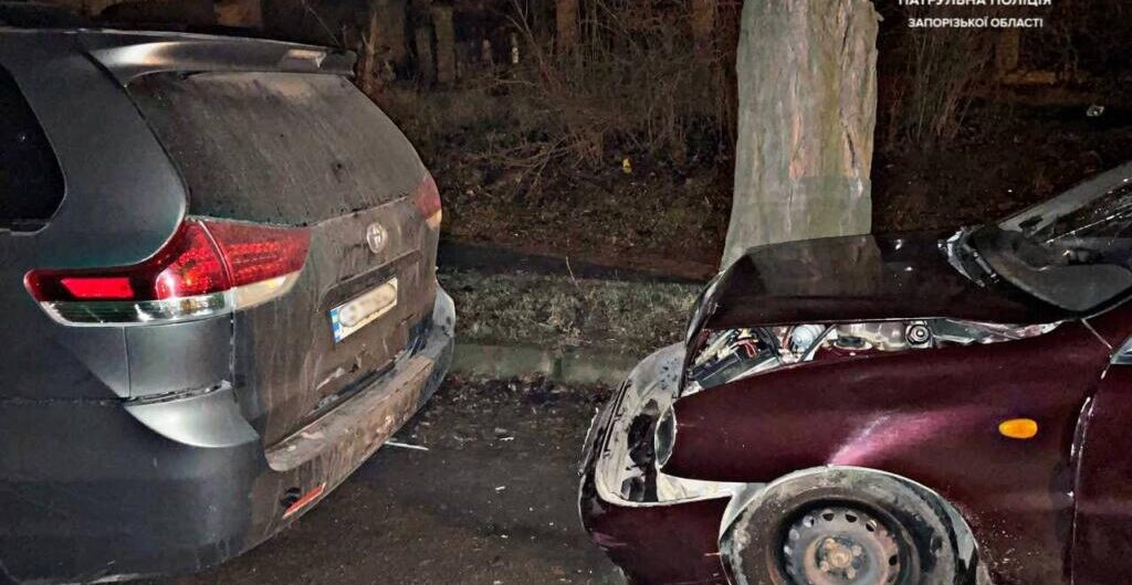 В Запорожье пьяный водитель врезался в стоячий автомобиль, - ФОТО