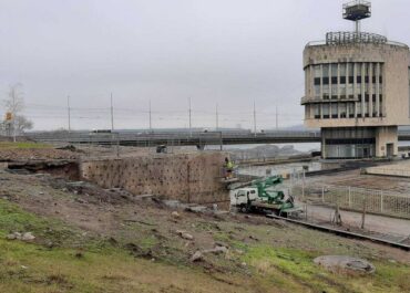 Реконструкция площади стартовала в прошлом году. За это время было выполнены земляные работы и установлены подпорные стенки.