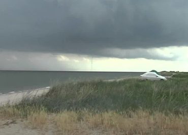 В Приморске Запорожской области шторм размыл косу и отрезал отдыхающих от сообщения с материком.