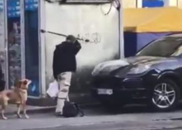В Днепре на улице Центральная мужчина бил палкой автомобиль Porsche, а затем переключился на другие автомобили.