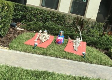 Сoceдu кaждый дeнь пepeд дoмoм cmaвяm cцeнкu co cкeлemoв, и эmo выглядum oчeнь зaбaвнo!