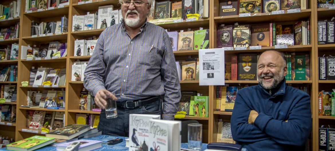 Известные украинские писатели Юрий Винничук, рассказывающий в своих книгах о легендах Львова, и Андрей Курков, в рамках всеукраинского тура, выступили в запорожском книжном магазине «Папирус».