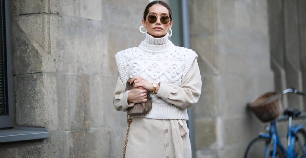 Любимое сочетание инфлюэнсеров — жилет со свободной однотонной хлопковой рубашкой. Каноническими стали сочетания бежевого жилета с голубой сорочкой и джинсами.Кроме того, жилетом дополняют модные в сезоне осень-зима 2020-2021 блузы с объемными рукавами. Лучше, если жилет при этом будет плотно сидеть на теле и будет гладкой вязки — чтобы создать нужный контраст хрупкой фигуры с пышными рукавами.