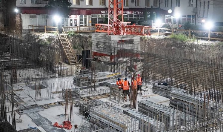 У Запоріжжі триває безперервне будівництво нового хірургічного корпусу обласної дитячої лікарні. Роботи ведуться цілодобово — у кілька змін, без вихідних і навіть вночі. Уже завершено заливку фундаменту, і будівельники активно зводять стіни підземного рівня.