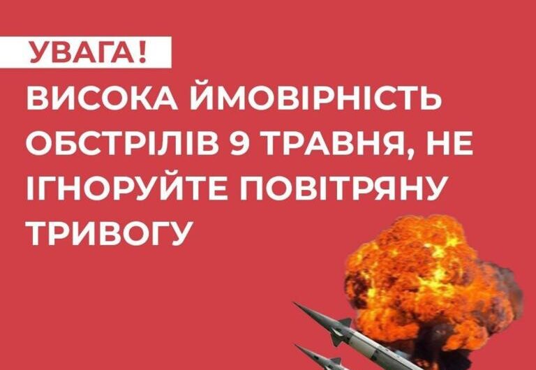 Центр протидії дезінформації при Раді національної безпеки і оборони України закликає напередодні та під час 8 – 9 травня бути особливо уважними до сигналів повітряної тривоги.