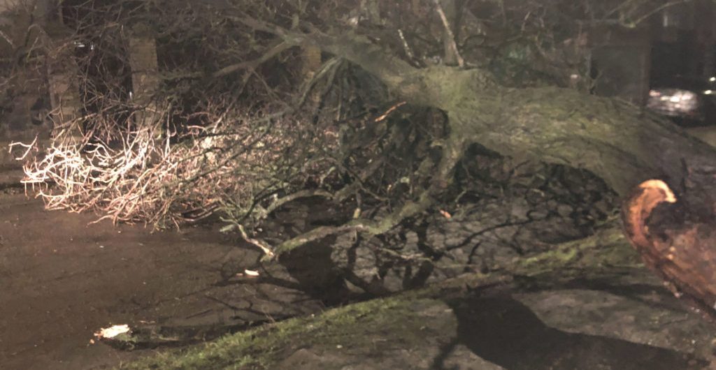 Упавшее дерево было убрано в течении часа. К счастью, никто не пострадал. Об этом сообщают местные СМИ.