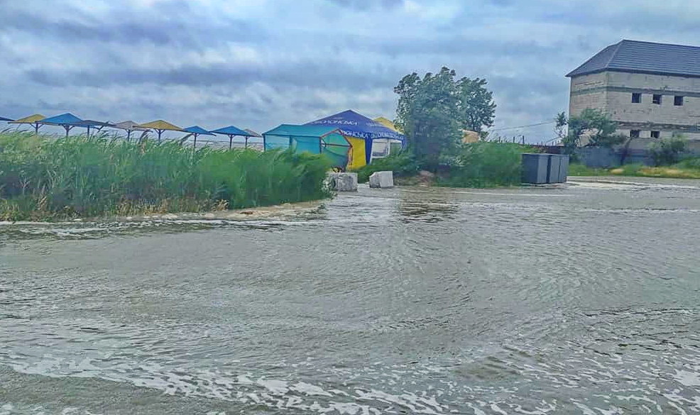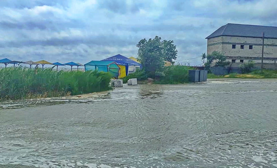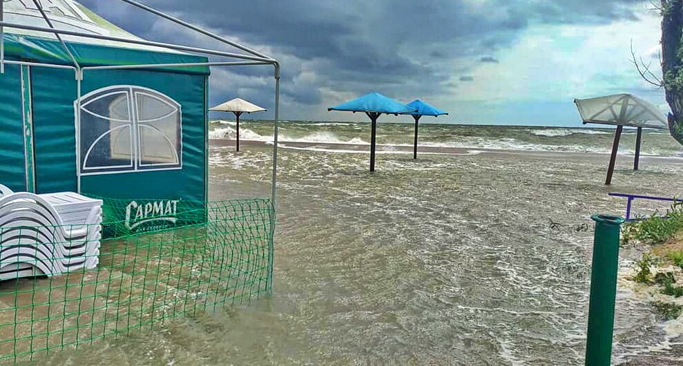 После вчерашнего шторма пляжи в районе Верховой оказались под водой. Подтоплены также и кафе, расположенные на берегу.