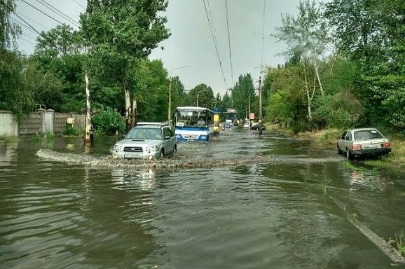 Из-за дождя на бульваре Шевченко образовалось озеро.