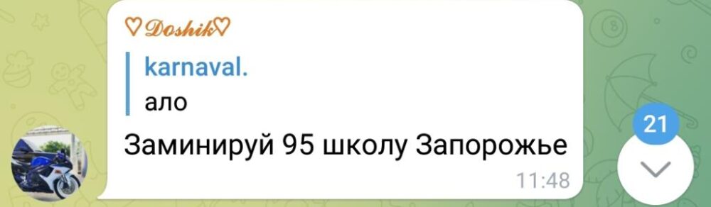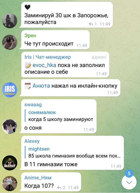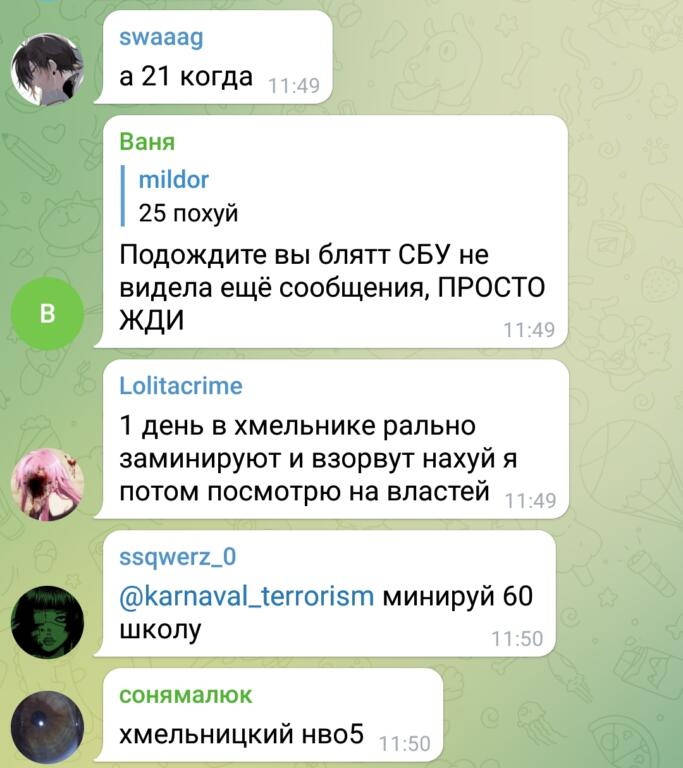 В чате его подписчики, в основном, школьники пишут сотни сообщений с просьбами заминировать их школу. Мы сделали лишь малую часть скриншотов с сообщениями подростков, которые призывают к преступлению из-за своего нежелания учиться.