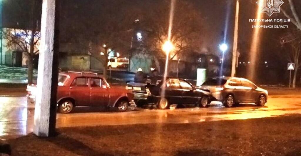 Как рассказали в пресс-службе патрульной полиции, водитель автомобиля Opel Omega не соблюдал безопасную скорость и дистанцию, что привело к столкновению с транспортным средством Citroen C4, в который потом въехал и автомобиль Москвич.