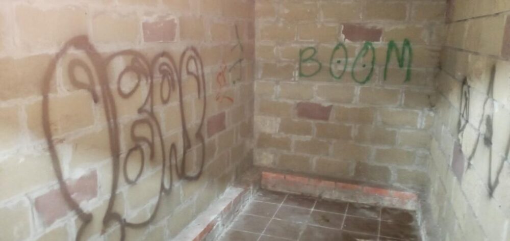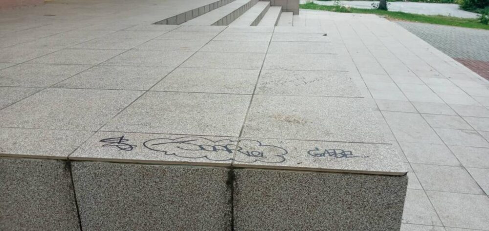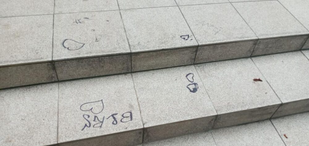 “Художник” портит стены, таблички и ступени, об этом сообщают местные жители в группе в Facebook.