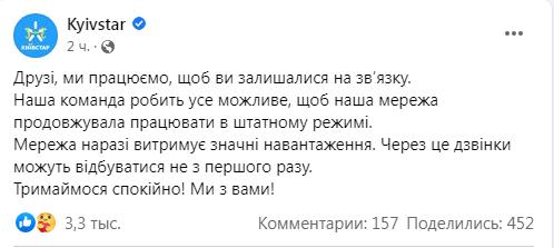 По информации Kyivstar неполадки в работе сети устраняются . Компания делает всё возможное, чтобы оставаться всегда на связи и сеть продолжала работать в штатном режиме. Сеть на данный момент выдерживает значительные нагрузки. Из-за этого звонки могут происходить не с первого раза.