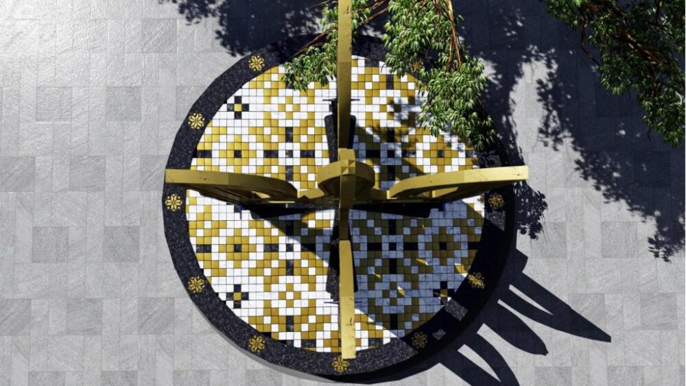 Куртев предложил, чтобы орнамент основы трезубца представлял собой код нашего города. И строительство «сухого» фонтана.