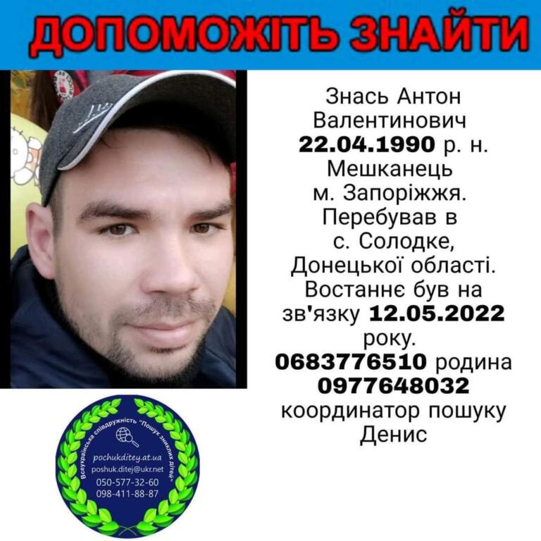 Він проживає в Запоріжжі, на час пропажи перебував в с. Солодке Донецької області.