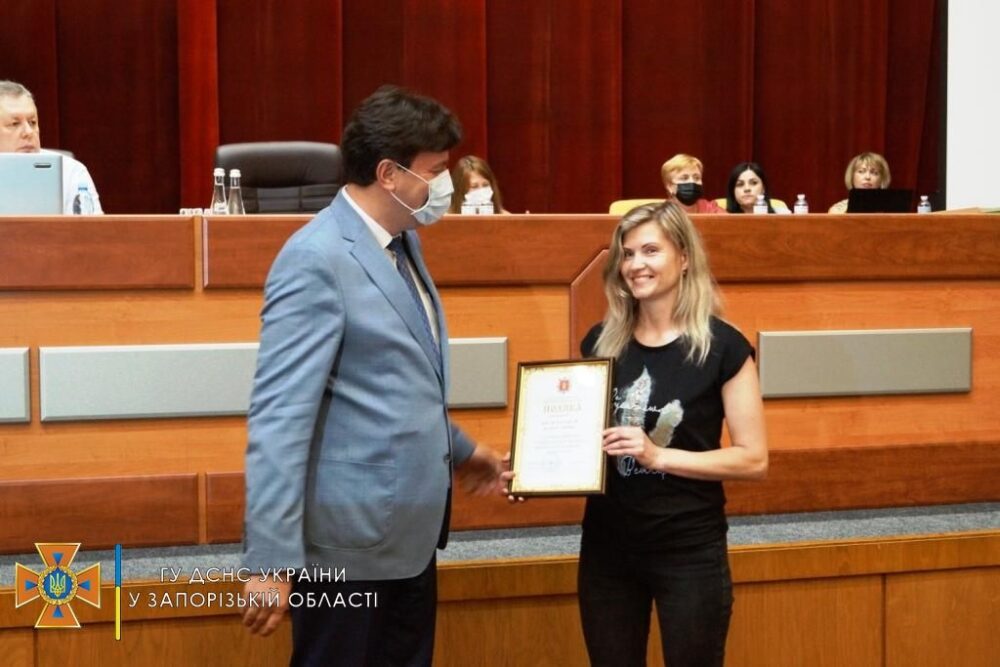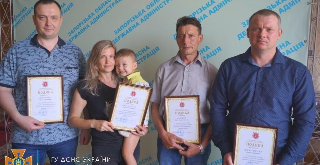Анастасия Аниканова, Алексей Сафонов, Сергей Тимошенко и Юрий Мишин за проявленный героизм при спасении людей получили благодарности от главы Запорожской облгосадминистрации Александра Старуха.