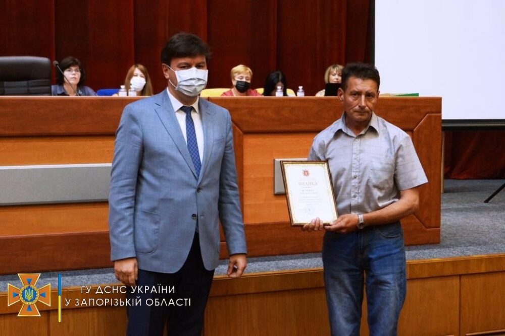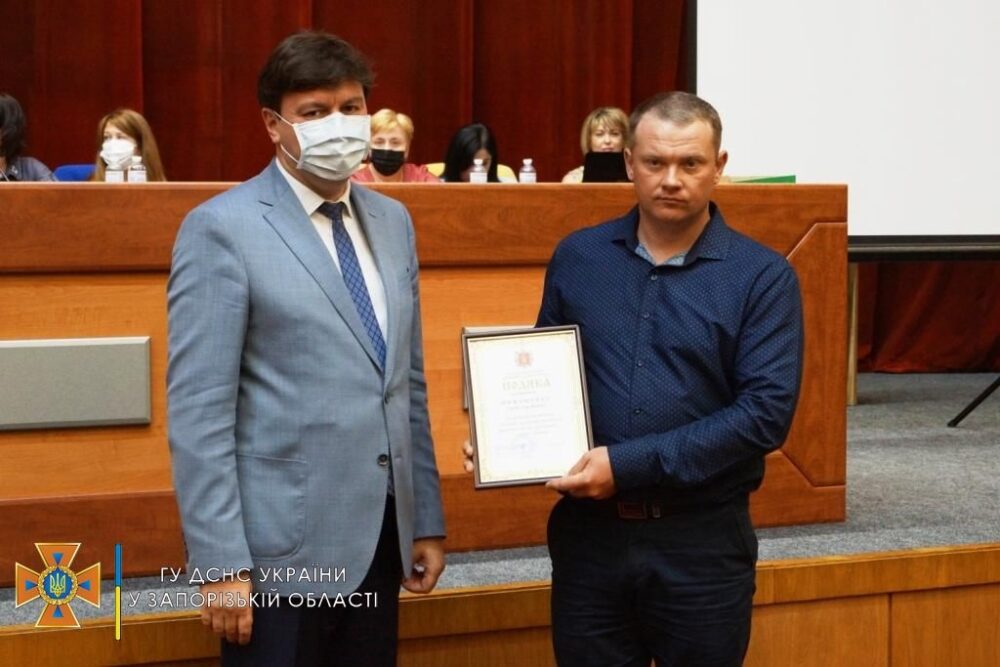 Анастасия Аниканова, Алексей Сафонов, Сергей Тимошенко и Юрий Мишин за проявленный героизм при спасении людей получили благодарности от главы Запорожской облгосадминистрации Александра Старуха.
