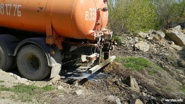 Неизвестные из ассенизаторской машины сливают отходы в неположенном месте.