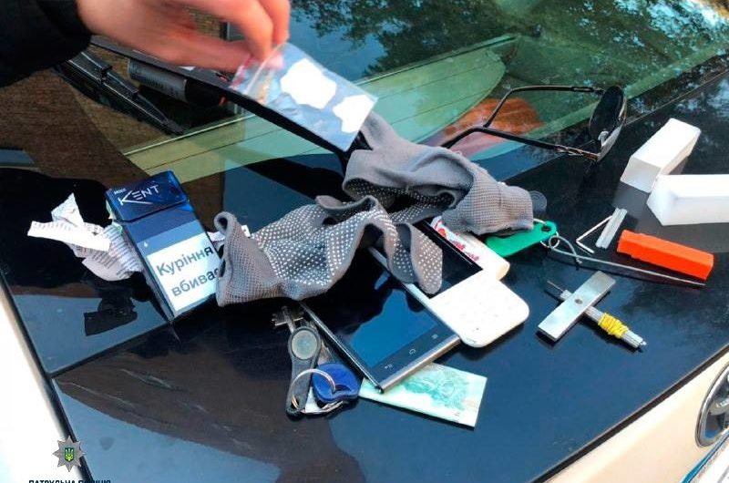 Обследовав прилегающую территорию, патрульным быстро удалось обнаружить подозреваемую. Ею оказалась 24-летняя жительница Запорожья у которой во время проверки инспекторы обнаружили набор отмычек, набор магнитных ключей и рукавицы.