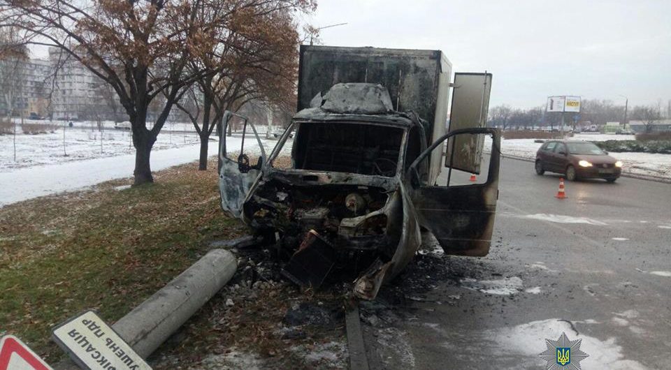 Как сообщает пресс-служба патрульной полиции, водитель автомобиля ГАЗ не учел дорожную обстановку и не справившись с управлением совершил наезд на электроопору, в результате чего его автомобиль загорелся и получил механическое повреждение с материальными убытками.