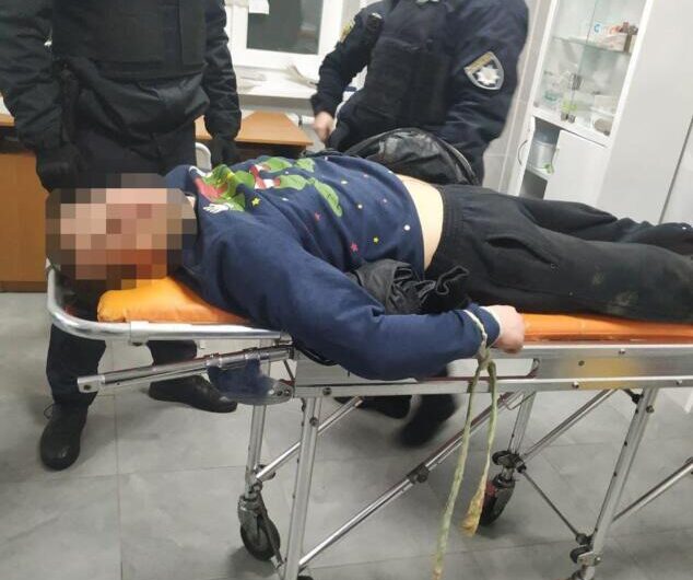 Почти невредимого мужчину полицейские обнаружили вблизи дома. Совместно с работниками нарядов прибывшей на помощь полиции к агрессивному правонарушителю применили наручники и на карете скорой сопровождали в городскую больницу, где мужчине оказали медицинскую помощь.