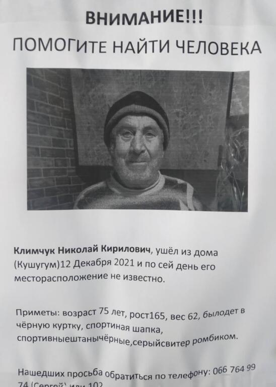 12 декабря Николай Кириллович ушел из дома и долгое время о нем не было ничего неизвестно. 14 декабря его объявили в розыск.