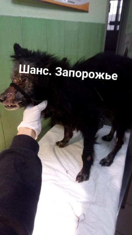 Пес вживую выглядит ещё хуже, чем на фото и видео.. Очень худой, глаз не видно..