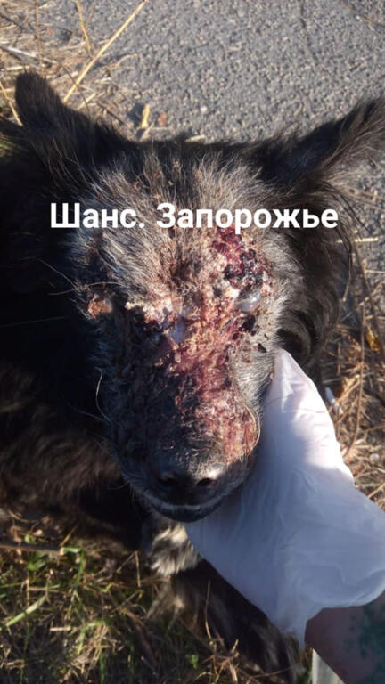В Запорожье нашли собаку в буквальном смысле “без лица”.