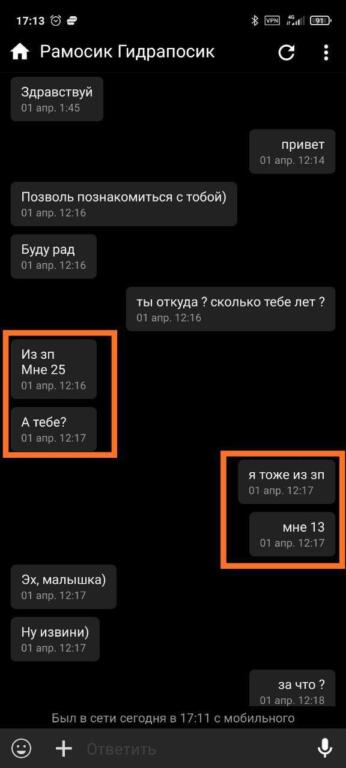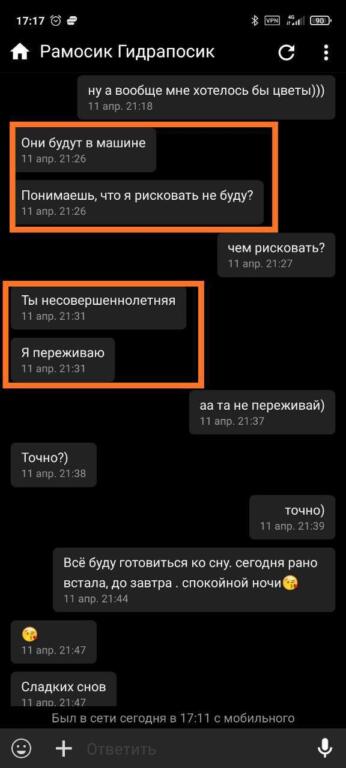О педофилических наклонностях мужчины общественники впервые узнали ещё полгода назад, когда общался с девочкой 13-ти лет. Он присылал ребенку гениталии, обещал страстный секс в различных вариациях.