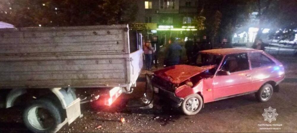 В Запорожье пьяный водитель легковушки врезался в грузовик.