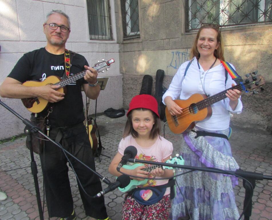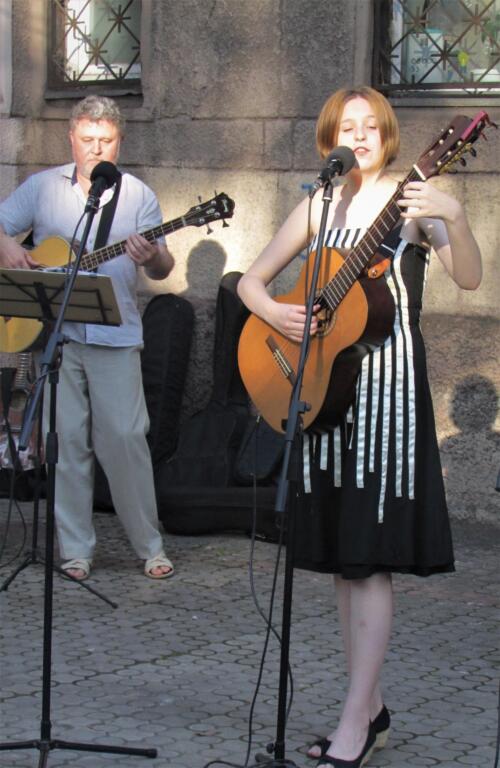 Программу на сочном украинском языке вел артист Александр Третьяченко. А среди участников были не только запорожские барды, но и гости из Днепра и Каменского. Днепровцы Александр и Снежана Казарины приехали с 9-летней внучкой Вероникой. Девочка спела «Спляшем, Пегги, спляшем», аккомпанируя себе на гитаре укулеле.