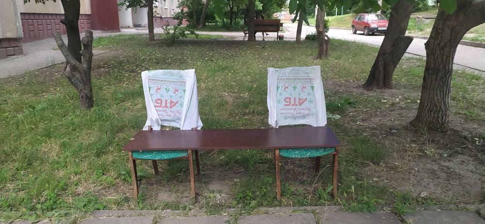 Значит конструкция такая: на двух стульях положили, скорее всего полку от старого шифоньера или стола. Спинки стульев накрыли “чехлами” – пакеты из АТБ. Люди молодцы выходят из любой ситуации. Пока не сделаешь сам, никто не сделает.