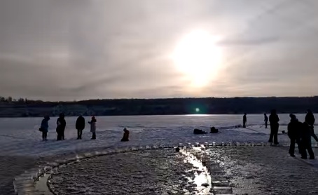 Ледовую карусель сделали на заледеневшем Днепре в урочище Сагайдачного. Видео создания выложил пользователь Facebook Durna Skelya.