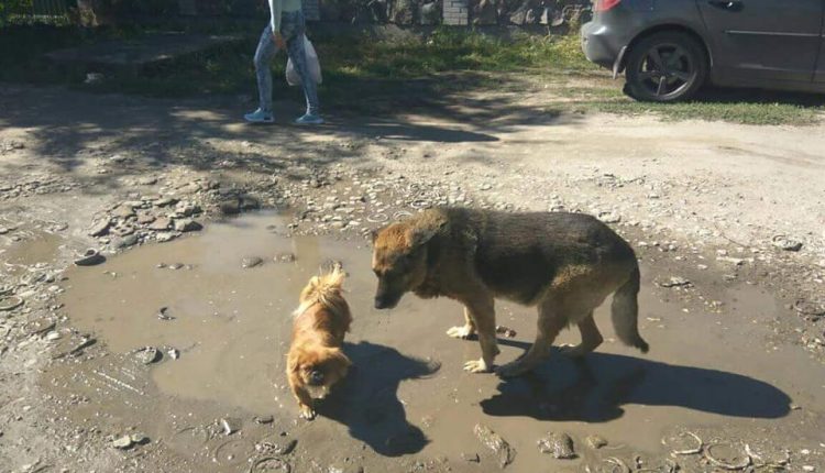 ” Вчера на Бородинском, на улице Логинова видела пару собак. Пекинесиху и кобеля, похожего на овчара. Кобель очень тяжело ходит, не худой совсем, как раздутый. Уши едят мухи. Обе собаки в ошейниках кожаных, но не новых. Не знаю, может на самовыгуле. Фото прилагаю. Не попадались Вам такие среди объявлений о пропаже? Может они местные и их знают. Я совсем не опытный собаколюбитель. Подскажите, пожалуйста, что делать?” 0664047996 Юля” – пишет автор поста.