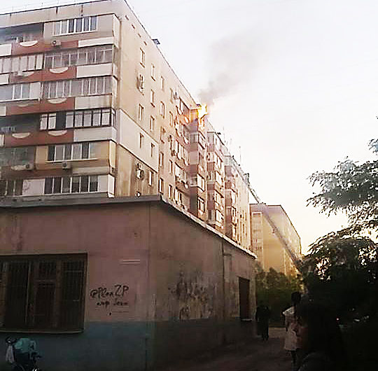 Прибыв на место происшествия, спасатели установили, что на девятом этаже горит балкон и домашние вещи на общей площади 10 кв. м.