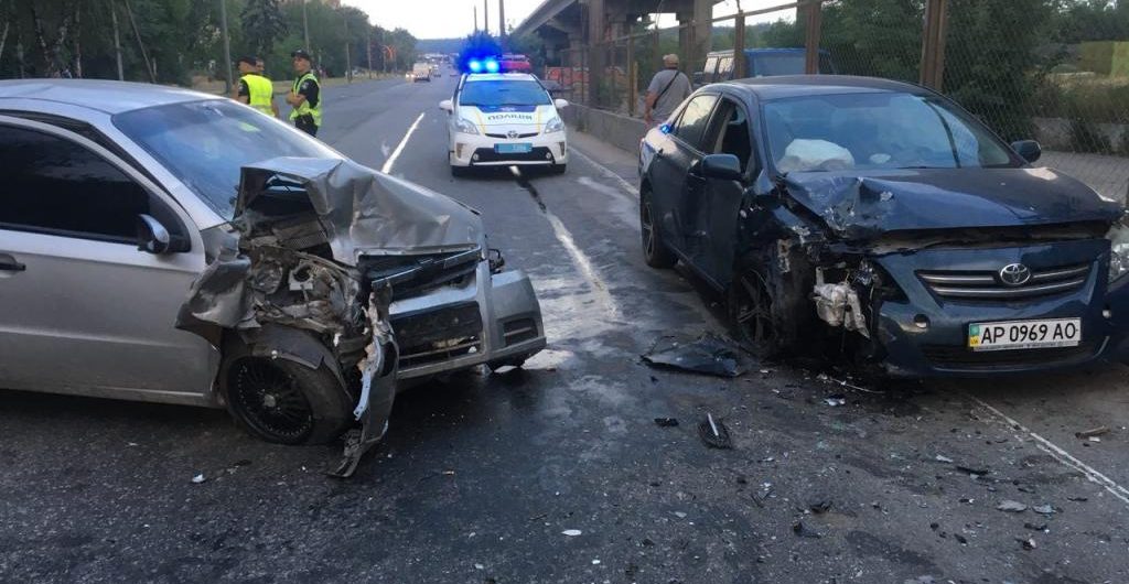 Вчера, 16 июня, в Запорожье во второй половине дня на Набережной магистрали дорогу не поделили 2 автомобиля «Шевроле» и «Тойота».