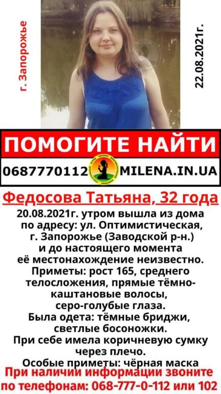 В Запорожье разыскивают 32-х летнюю женщину.