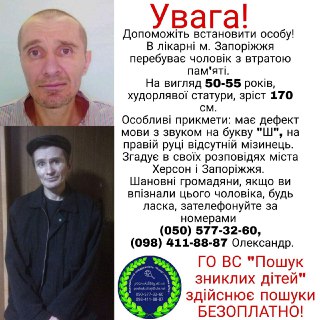 В Запорожье просят установить личность мужчины, который находится в больнице.