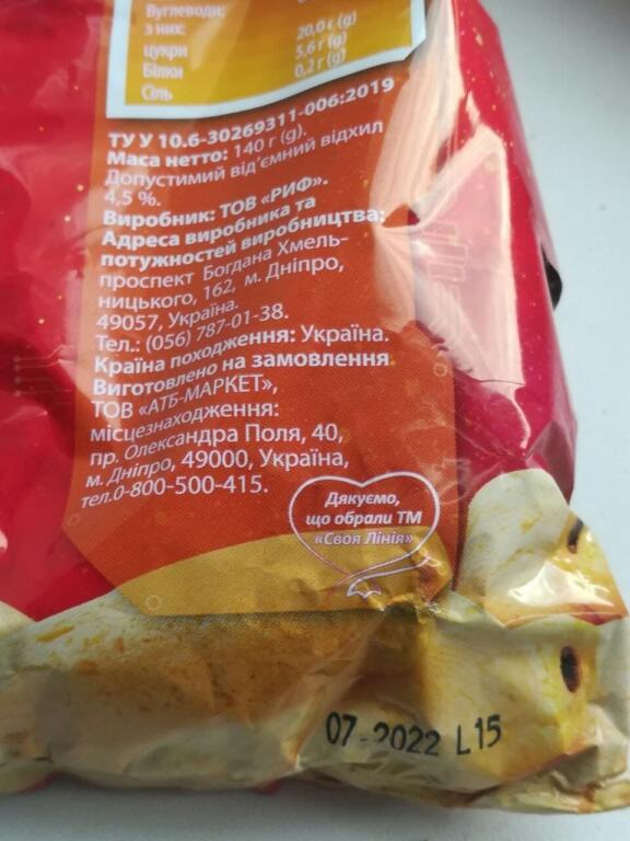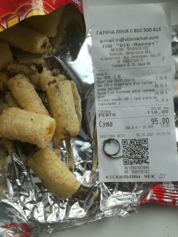 Купили в АТБ ребенку сладости от ТМ #Своя_Линия, производство ТОВ #РИФ. В упаковке попалась металлическая проволока, а сами сладости воняют химическим веществом, – говорится в сообщении.