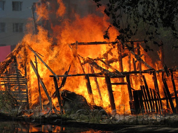 Спасатели прибыли на ул. Иркутскую и обнаружили, что горит сарай на общей площади 40 кв.м.