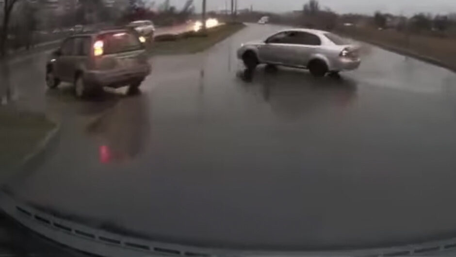 Видео с регистратора появилось в социальной сети. На нем видно, как легковой автомобиль Chevrolet Aveo совершил поворот налево с крайнего правого ряда, тем самым подрезал автомобиль. Уходя от столкновение легковушку занесло и машина перевернулась.