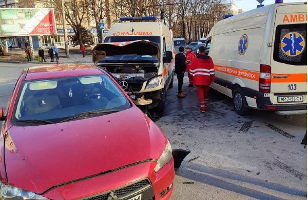 ДТП произошло сегодня, 14 февраля, около 14.30 на проспекте Соборном в районе ТЦ Аврора. «Мазда» на перекрестке поворачивала на улицу Франка и в этот момент в нее сзади въехала карета «скорой помощи». К счастью в аварии никто не пострадал, но у машины медиков сильно разбит моторный отсек, а у легковушки покорежен левый бок.
