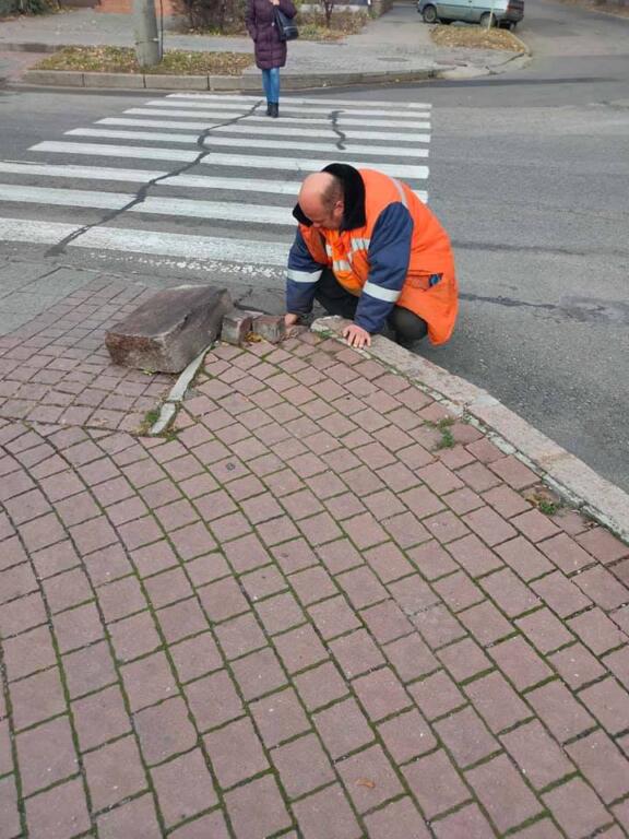 Неизвестные выломали кусок бордюрного камня на тротуаре по бульвару Шевченко.
