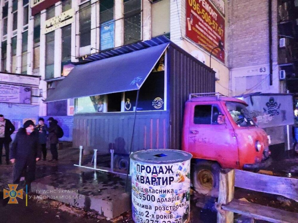 В Вознесеновском районе города загорелся передвижной киоск. Через несколько минут после звонка на “101” прибыли машины пожарно-спасательного отделения ГСЧС Запорожской области.