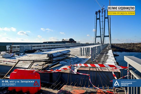 Сегодня, 22 декабря, команда генподрядной организации “Онур” завершила опускание пролетного строения № 10 (вантовый мост) Автотранспортной магистрали через г. Днепр в г. Запорожье к проектному положению.