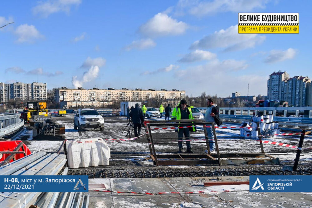 Как отмечает пресс-служба Службы автомобильных дорог в Запорожской области — установка опорных частей, монтаж деформационных швов, нанесение гидроизоляции и устройство дорожного покрытия.