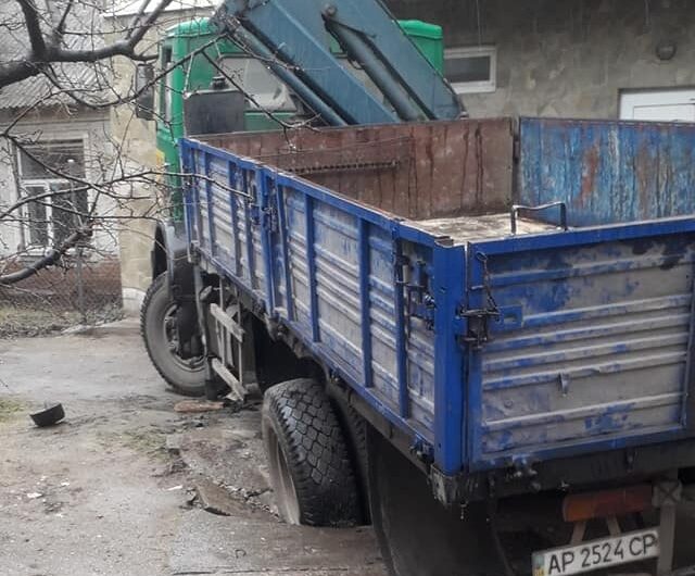 Грузовик провалил перекрытие теплотрассы во дворе по улице Первомайской, 36 в городе Бердянск.