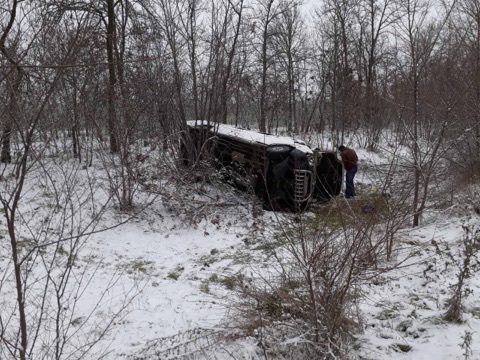 Вблизи с. Привольное Мелитопольского района автомобиль «Volkswagen LT» двигаясь в направлении из Кирилловки в Запорожье съехал в кювет и перевернулся на бок.