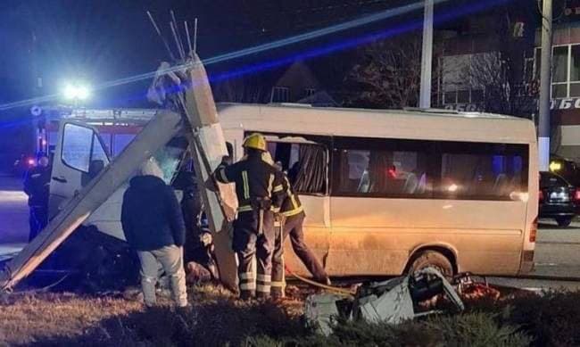 Вчера, 11 января, в Мелитополе маршрутка врезалась в столб.
