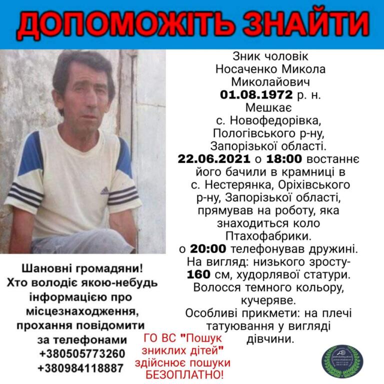 Мужчину последний раз видели в 18.00 а магазине в селе Нестерянка Ореховского района. Он направлялся на работу, которая находится около птицефабрики, и пропал.