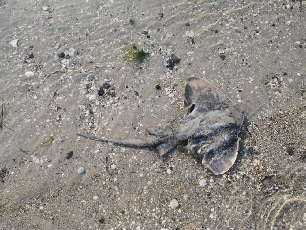 Скатов хвостоколов можно встретить в морях тропических и умеренных широт. Но такую рыбу заметили в Бердянске возле базы отдыха “Красная гвоздика”.